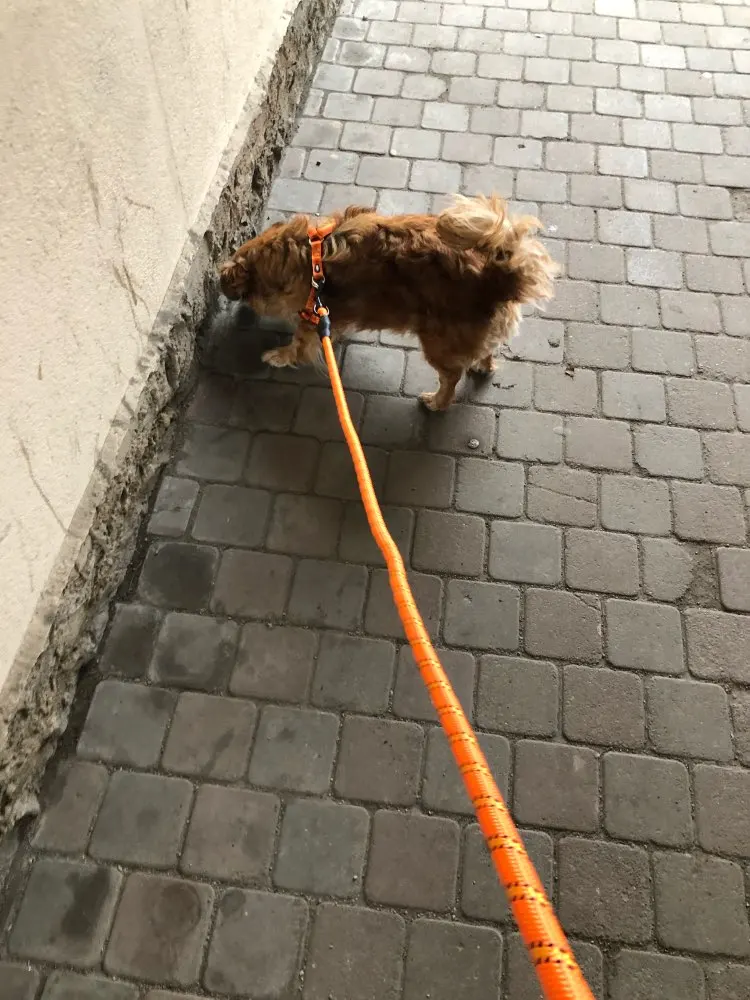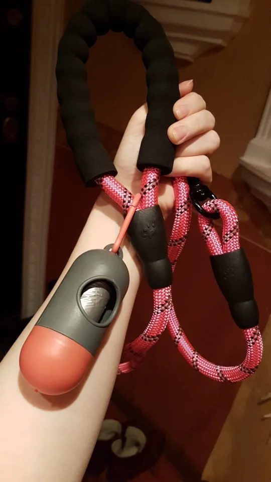 I walked long enough, I already thought that I would not get it at all. It turned out to be very cool, the handle is comfortable, it is long enough, until it is used, I have a small dog, suitable for Spaniel, for example, in size. The thing for bags is comfortable, they are large enough, with an average pile can easily cope)))