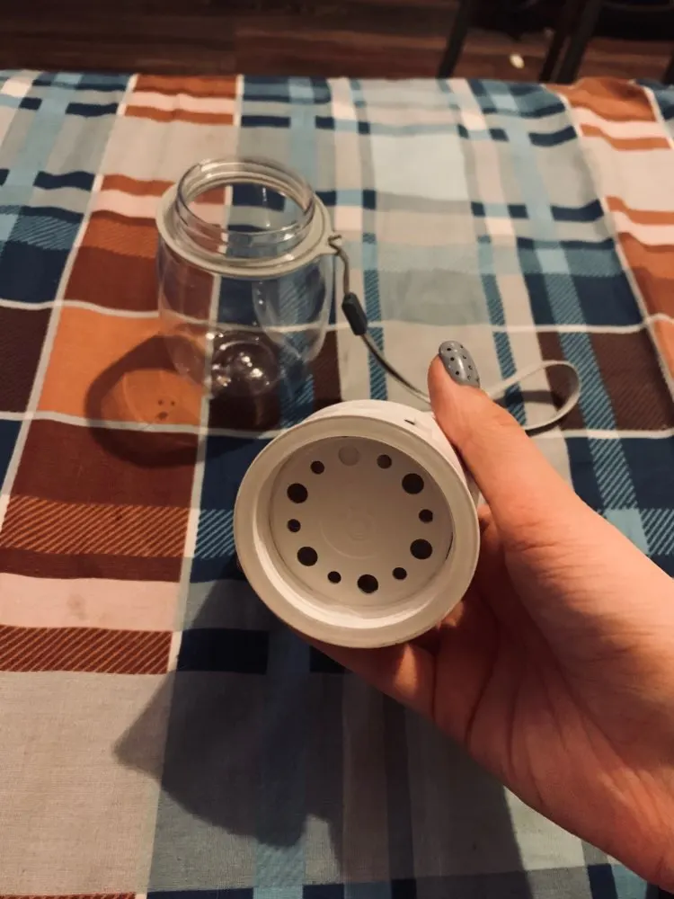 Nice bottle. Like in the picture. Neat, beautiful. In the "closed" position, if you press the button, it flows a little. But by accident, this button is definitely not pressed. It is very tight pressed when in this position. The parcel came in 2,5 weeks. Very quickly, given that there were May holidays.